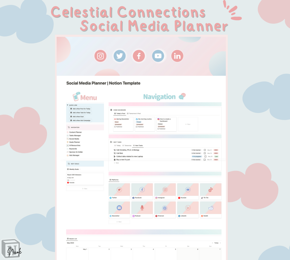 With Celestial Connections: Social Media Planner, you'll have all the tools you need at your fingertips: